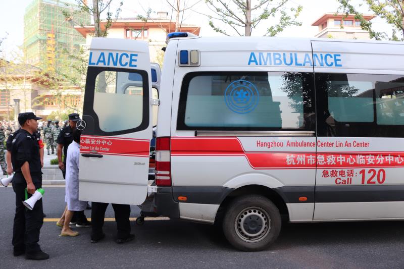 八点四十三分,总指挥宣布演习开始。临安校区6号楼和13号楼同时起火,警报响起,在校卫队疏导员的指引下,全体学生用毛巾捂住口鼻,呈弯腰低姿,快速撤离火灾现场。五分钟内,全部人员疏散完毕,其中一名学生因腿部摔伤被困楼道,校义务消防队员进行现场解救,解救成功后送至医疗救护区域,经简单救护后由救护车送往医院治疗。疏散人员离开火险现场后在安全地带集中进行点验,并向总指挥报告。