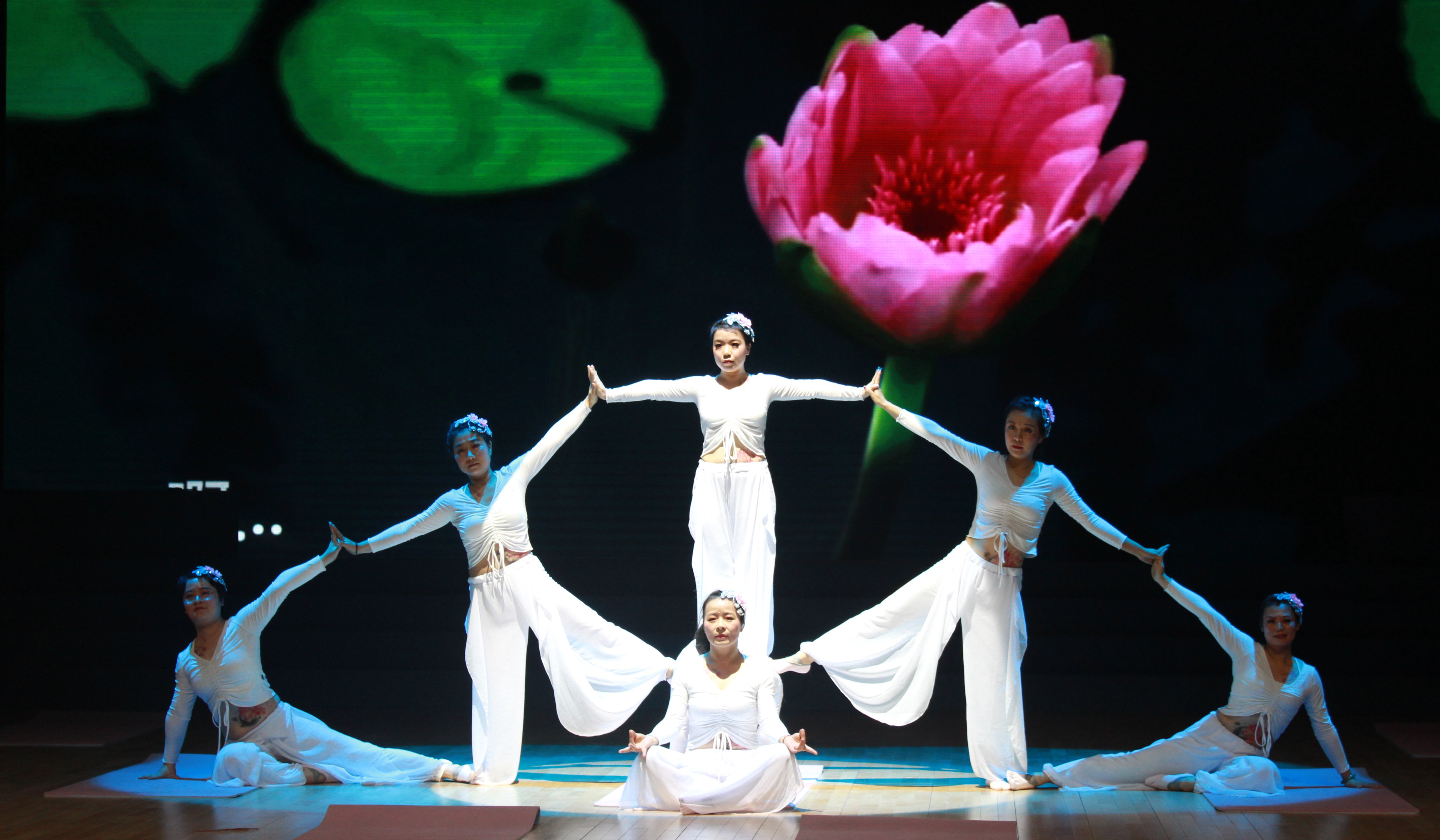 黄龙科教中心的教工用瑜伽表现了良好的精神面貌