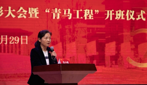青马工程开班为全校各团支部团员代表提供了一个良好的平台,也是我校团学工作开展的主要环节,为我校团学干部的培养打好了坚实的基础。党委副书记娄小娥为青马工程指导老师王锋雷、班主任刘俊汲颁发证书并为第一期学员授旗。