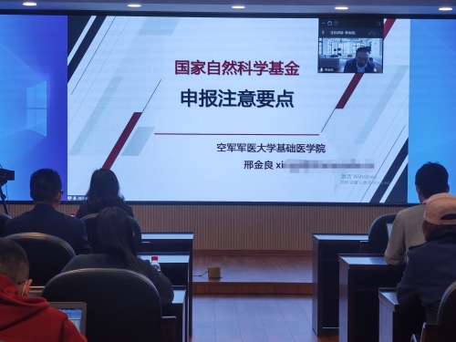2022年10月18月,我校召开2023年度国家自然科学基金申报启动会,特邀空军军医大学肿瘤生物学国家重点实验室邢金良教授作专题讲座。会议线上线下同时进行,由科研处负责人许秋然研究员主持,各二级学院分管科研院长、科研秘书、校本部和附属医院有关科研人员等百余人参与了本次会议。