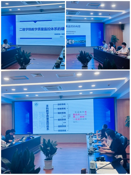吴丽慧强调要高度重视教学质量监控工作。学校教学质量监控与保障体系建设应注重体系化、系统化,从源头制定目标、标准,搭建信息系统,全面收集全要素信息,不断完善教学质量监控与保障体制。通过教学质量监控发现问题,解决问题,不断提升教学能力,提高教学质量。各二级学院要构建和完善二级学院的质量监控体系,要强调质量第一、全员参与、过程控制、持续改进,特别是要形成全校对教学质量监控工作紧抓不放的合力。