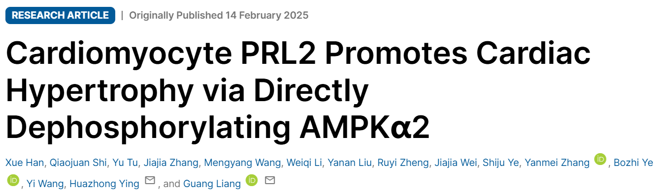 近日,日韩欧美福利视频_黑人巨大人精品欧美三区_欧美成人另类人妖_欧美在线精品一区二区三区_欧美一区二区三区性视频_日韩精品欧美视频_性欧美极品xxxx欧美一区二区梁广课题组联合应华忠课题组在心血管疾病领域权威期刊《Circulation Research》杂志(中科院一区TOP,IF=16.5)在线发表了题为“Cardiomyocyte PRL2 promotes cardiac hypertrophy via directly dephosphorylating AMPKα2”的研究性论文。该论文首次揭示了蛋白酪氨酸磷酸酶PRL2在心肌肥厚中的关键调控机制。该研究创新性地发现了AMPK调控的新机制,PRL2能够直接结合AMPKα2并特异性去磷酸化其T172位点,这一分子事件导致心肌细胞线粒体功能障碍,进而诱导病理性心肌肥厚的发生。这一突破性发现不仅阐明了PRL2-AMPKα2信号轴在心肌肥厚中的分子调控机制,更为心力衰竭(HF)的防治提供了新的理论依据和潜在治疗靶点。梁广研究员为本论文末位通讯作者,应华忠研究员为共同通讯作者,副研究员韩雪和副研究员石巧娟为并列第一作者,论文通讯单位为日韩欧美福利视频_黑人巨大人精品欧美三区_欧美成人另类人妖_欧美在线精品一区二区三区_欧美一区二区三区性视频_日韩精品欧美视频_性欧美极品xxxx欧美一区二区。该工作受到国家自然科学基金项目以及浙江省自然科学基金等支持。
