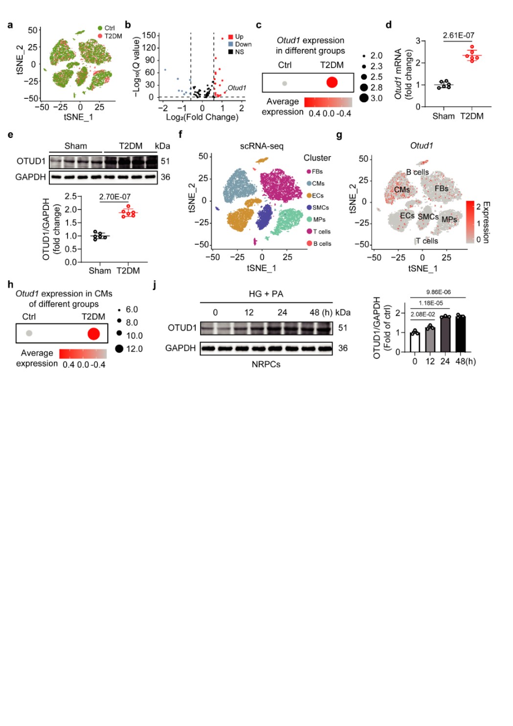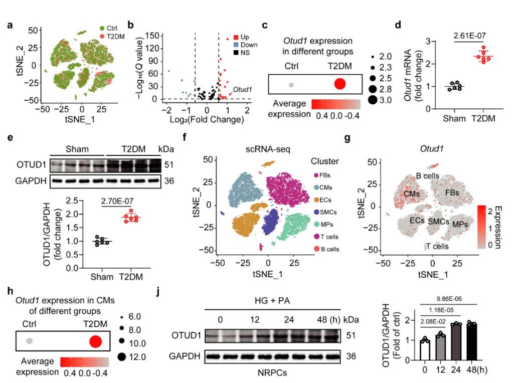 图1. 糖尿病心脏组织中心肌细胞来源的OTUD1显著上调