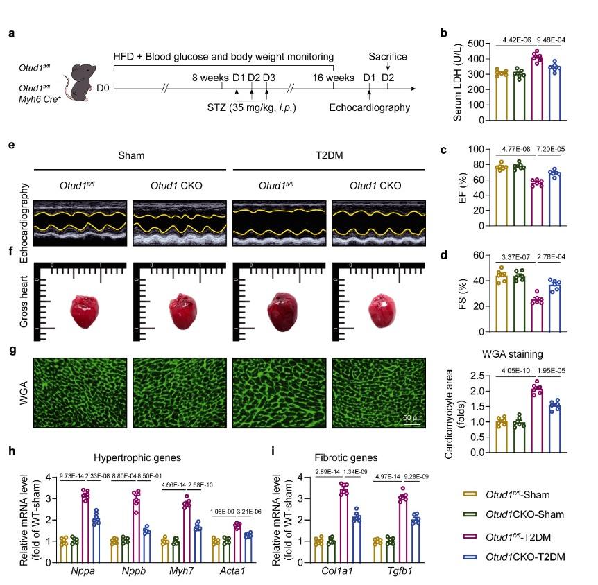 Nat Commun︱我校梁广/应华忠/石巧娟课题组揭示去泛素化酶OTUD1调控糖尿病心肌病的新机制