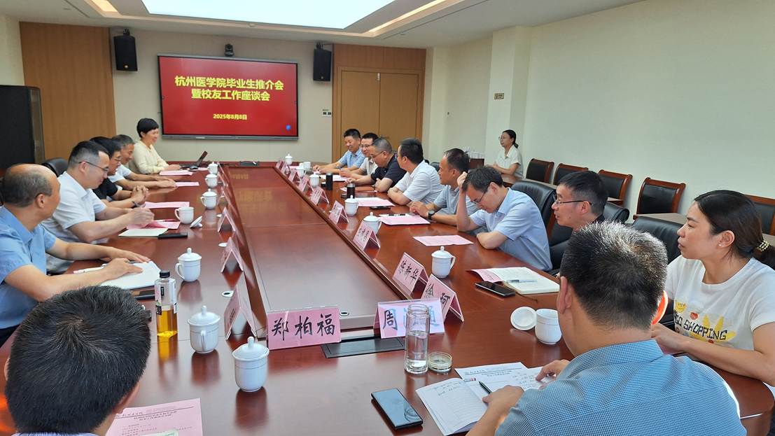 顾亚明简要介绍了百年杭医的新风貌、新特色和新目标。校办公室(校友办公室)副主任胡晓燕汇报了百年校庆的系列活动和校友工作。公共卫生学院党委副书记陈启云介绍了学校2025届、2026届毕业生情况及金华生源信息。