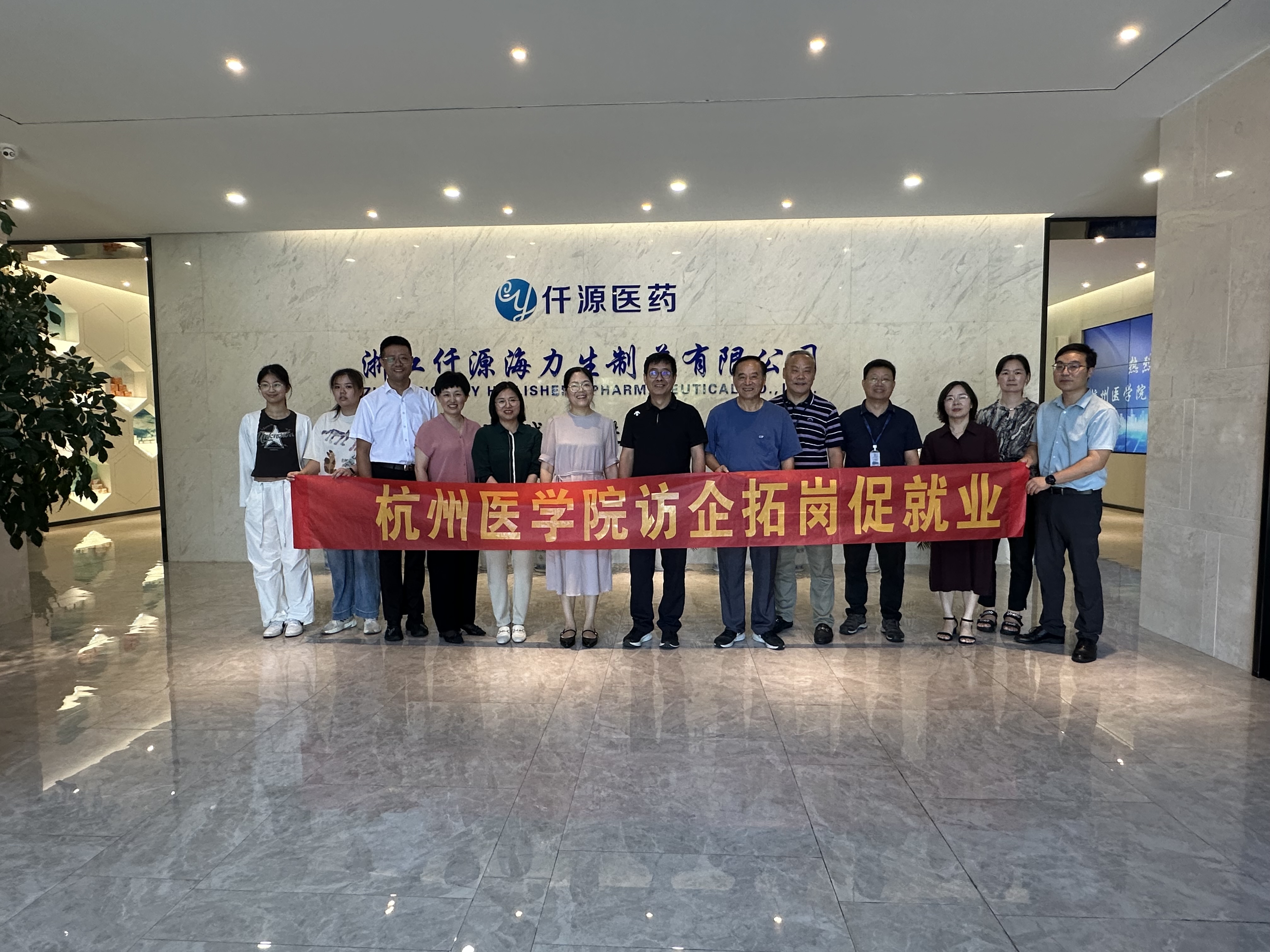 上午,一行人来到浙江仟源海力生制药有限公司。公司副总叶文波热情接待,详细介绍了公司悠久的历史沿革、强大的技术能力以及被广泛应用的临床药品等。随后,双方举行了座谈会。会上,董雨琴首先介绍了学校的整体概况,让企业对学校有了更全面的认识。药食学院党委副书记吴海华介绍了学校2025、2026届毕业生的专业分布、人数变化、就业地区分布、对口岗位等情况,为企业与毕业生之间的对接提供了清晰的数据支撑。接着,公司人力资源部刘燕主任分享了毕业生在企业就业后应具备的工作理念,她强调,毕业生不仅要具备扎实的专业知识,还需拥有良好的团队协作精神、沟通能力和持续学习的态度,才能更好地适应企业的发展需求。药食学院2026届毕业生王馨钰同学在会上分享了自己的职业规划。她表示,希望能将所学专业知识运用到实际工作中,从基层岗位做起,逐步积累经验,在医药领域实现自己的价值。2025 级新生安可可同学也积极发言,表达了对未来职业的憧憬,并就如何在大学期间提升自己以更好地匹配企业需求,与企业领导进行了交流。