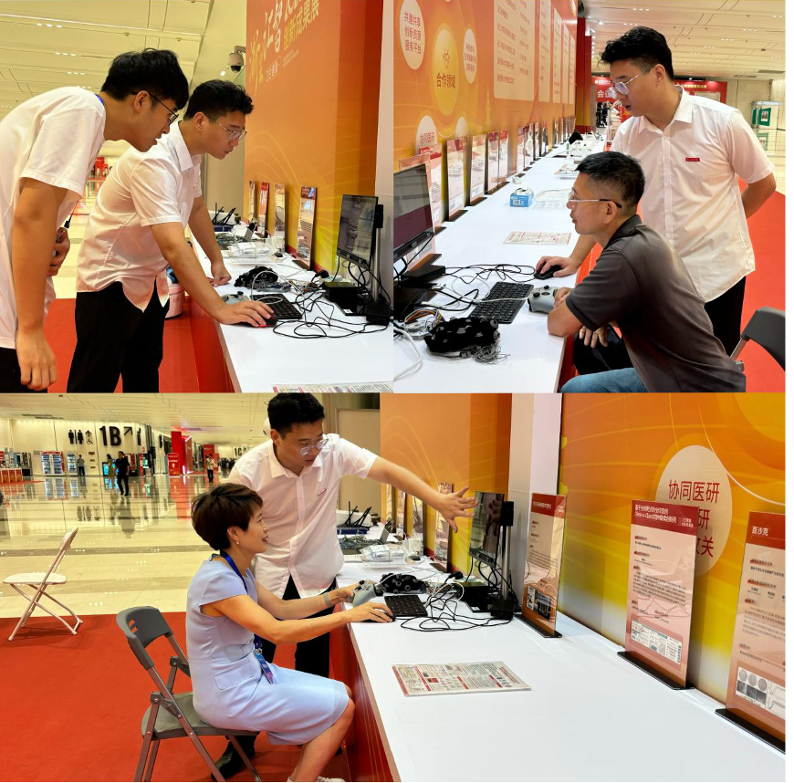 展会期间,信息工程学院教师积极组织邀请观众和展商亲身体验设备操作,感受其在AD辅助诊断中的应用流程,直观展示设备功能与优势。
